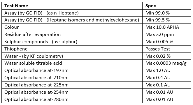 Heptane 99%, HPLC grade (CAS number: 142-82-5) is a non-polar solvent, being applicable to use for reverse-phase HPLC where organic compounds are separated. Usually applied in the analysis of lipids, oils and non-polar compounds.