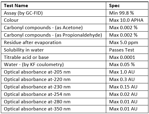 Isopropyl alcohol (IPA), HPLC grade (CAS number: 67-63-0) is frequently used in a wide range of analysis such as pharmaceutical, biochemical and environmental testing for both polar and non-polar compounds. There is a variation of uses including cleaning agent for chromatography equipment and sample extraction to name a few.